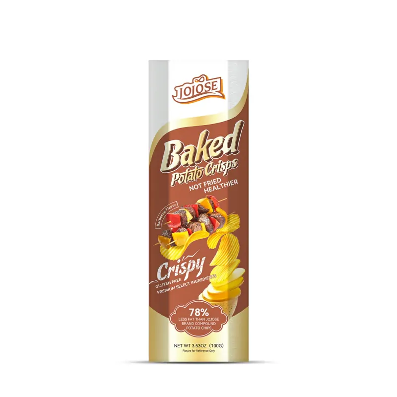 The new type baked potato chips is baked in the oven until they are crispy and crunchy and topping them with dressing. Baked potato chips has lower fat content, more moisture, with lower oil temperature during drying, and do not use multiple oils, so that baked potato chips has lower calories than another 2 types potato chips, and the loss of nutrients is relatively small, which is harmful Substance content is low. The popular brand of this baked potato chips is Orion brand from Korea. Jojose Foods is copying the taste & packing of Orion brand, with a better price!