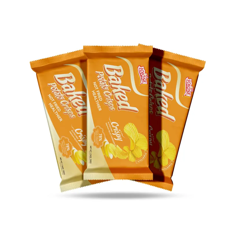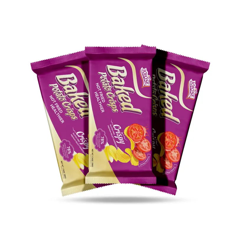 The new type baked potato chips is baked in the oven until they are crispy and crunchy and topping them with dressing. Baked potato chips has lower fat content, more moisture, with lower oil temperature during drying, and do not use multiple oils, so that baked potato chips has lower calories than another 2 types potato chips, and the loss of nutrients is relatively small, which is harmful Substance content is low. The popular brand of this baked potato chips is Orion brand from Korea. Jojose Foods is copying the taste & packing of Orion brand, with a better price!